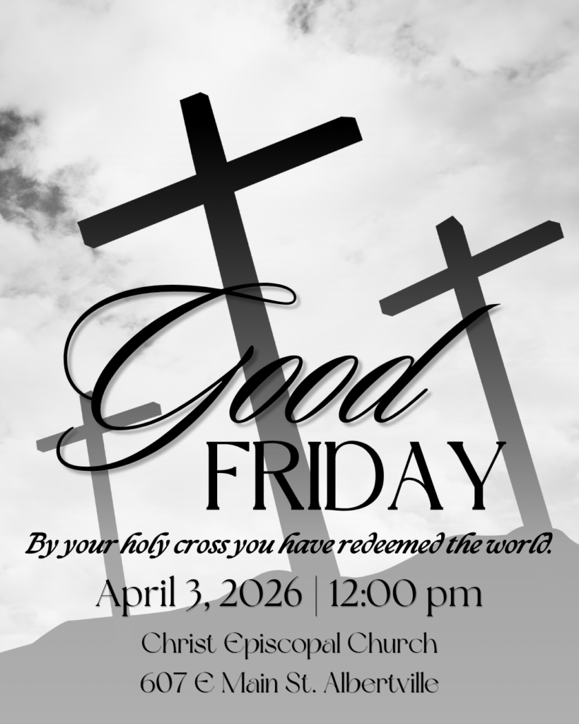 Christ Episcopal Church Albertville is rooted in sacred tradition and shaped by our call to seek and serve Christ in all others. We are committed to nurturing a family of faith as diverse as our growing community, inviting all into the abundant love of Christ as we strive to restore unity with both God and each other.